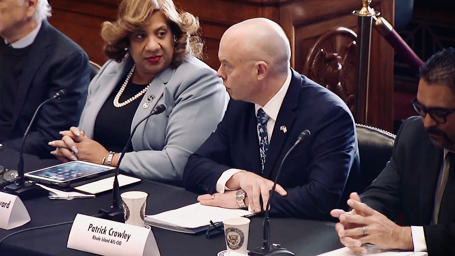One good thing is this broad coalition on this panel including elected officials, businesses, and labor - we should appreciate that after some years of occasional friction dividing labor and environmental interests, RI AFL-CIO head Patrick Crowley seems highly dedicated to seeing the common interests of both groups and working together. Bravo!