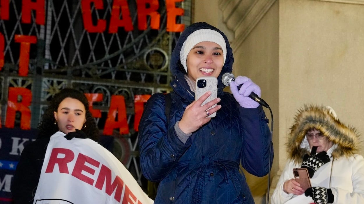 “They tell us we are small. They tell us we are powerless. But look around you. We’re out here. We are the power. We are the working class rising, and we’re only getting stronger. We truly are. And we’ve seen this in the past few years. On U.S. soil, we are getting stronger. If they try to drag us into another war, if they try to bomb Iran in our name, if they try to sacrifice another generation, they will have to reckon with us. I am not afraid. Are you afraid? No. We are not afraid. We are not silent. We will not back down. And when the people rise together, we cannot and will never be stopped. No more sanctions, no more war.”