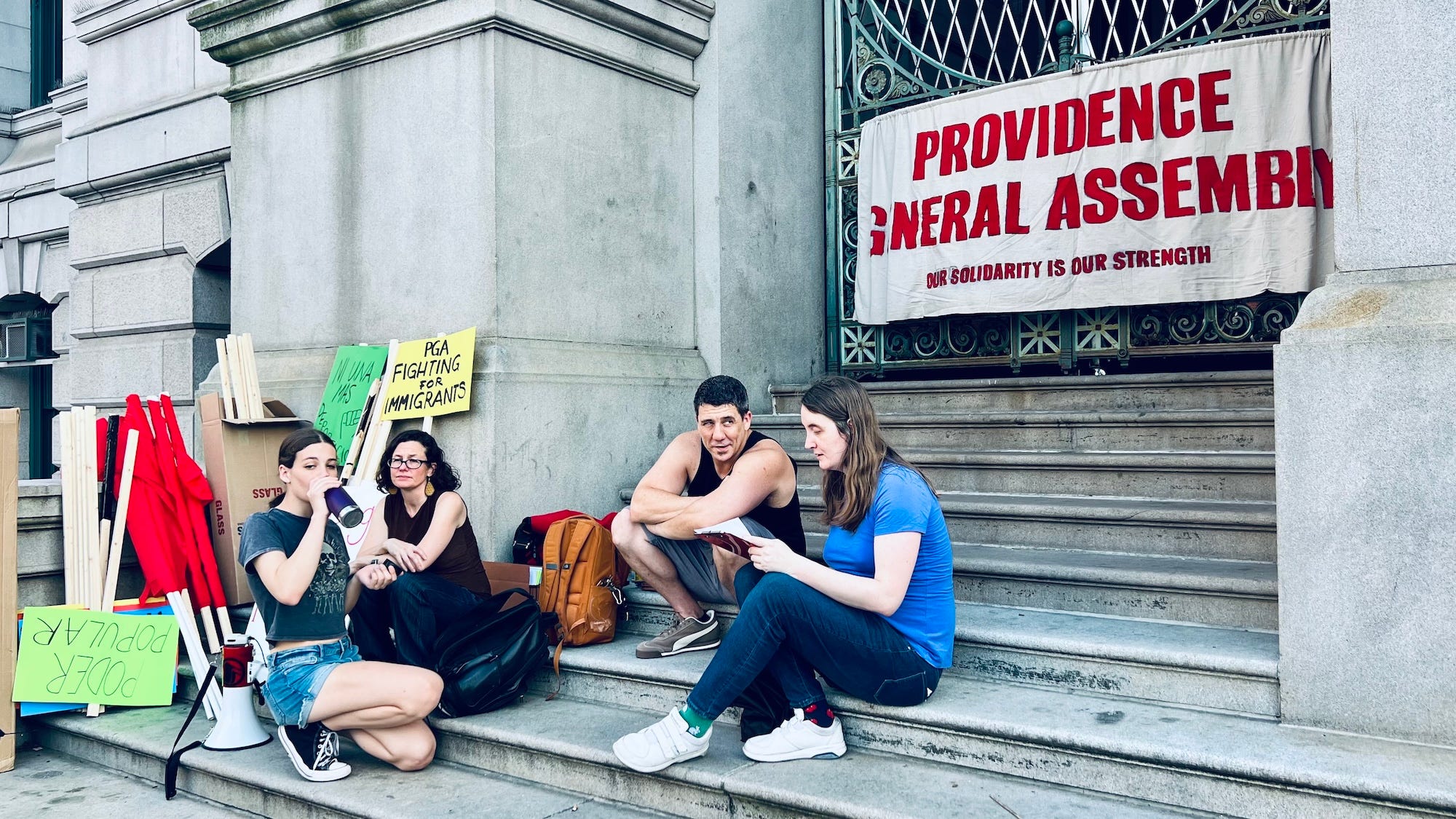 We are only weak when we aren’t together. We need to find ways to collectively confront these injustices. We need to not only protest institutions like ICE, but also effectively disrupt them. The immigrant solidarity group is trying to determine the best ways to do that. We can do none of these things on our own. These things won’t just spontaneously happen. We’re doing much of this building within the Providence General Assembly.