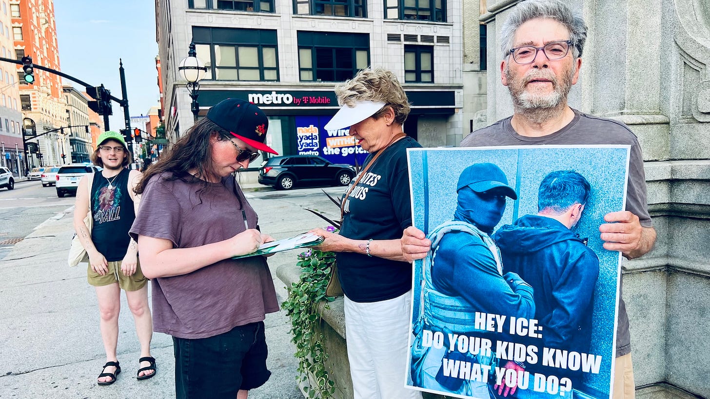 In the wake of Providence Police officers seen on video collaborating with Immigration and Customs Enforcement (ICE) agents, contrary to publicly stated city policies, the Providence General Assembly (PGA), which does everything from political education to building community gardens to posting bond for people arrested by ICE, held a rally and speak-out outside City Hall on Wednesday.