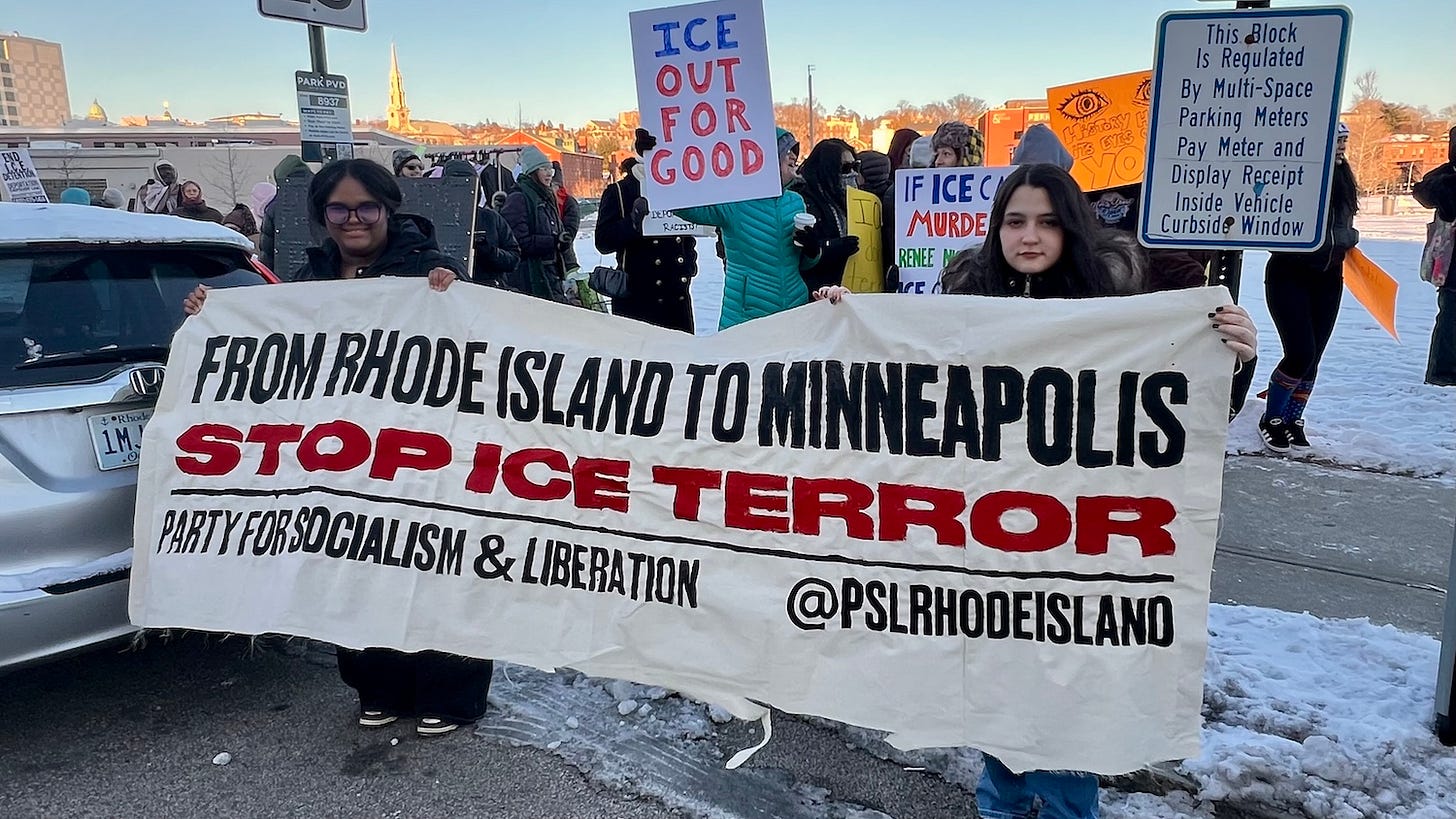 Representative Potter mentioned the actions of Immigration and Customs Enforcement (ICE) officials using excessive force against and arresting those peacefully protesting or documenting their actions, and the deployment of the military and the National Guard to act as local law enforcement, as examples of the types of actions that could lead Rhode Islanders to sue under this law.