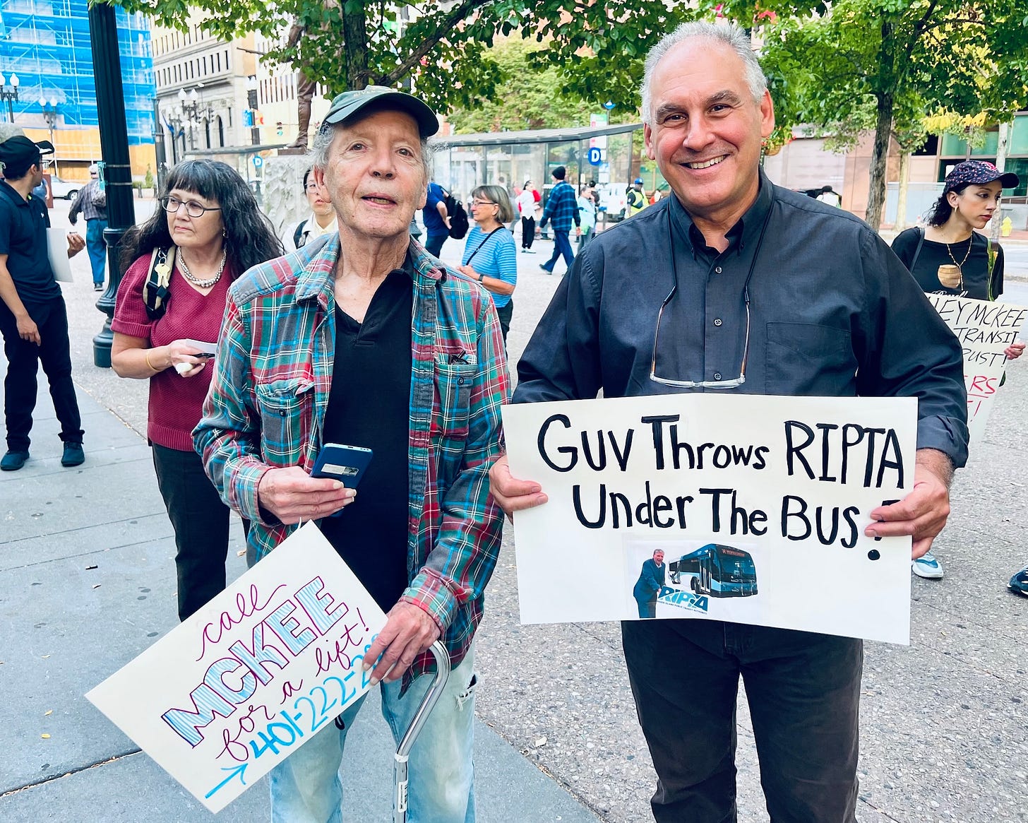 “Beware of the people among us who pretend to be stakeholders, but are not. Two people on the RIPTA Board voted against these cuts, and the rest of that board voted for the cuts. When people have skin in the game, they ride the bus with you. Your RIPTA Board is not riding the bus with you. Look out to see who is on the bus with you because they need skin in this game. Look around. Recognize your allies. Recognize your fellow riders, your stakeholders. Greet them on your bus tomorrow. Treat them kindly and remember: We have skin in this game.”