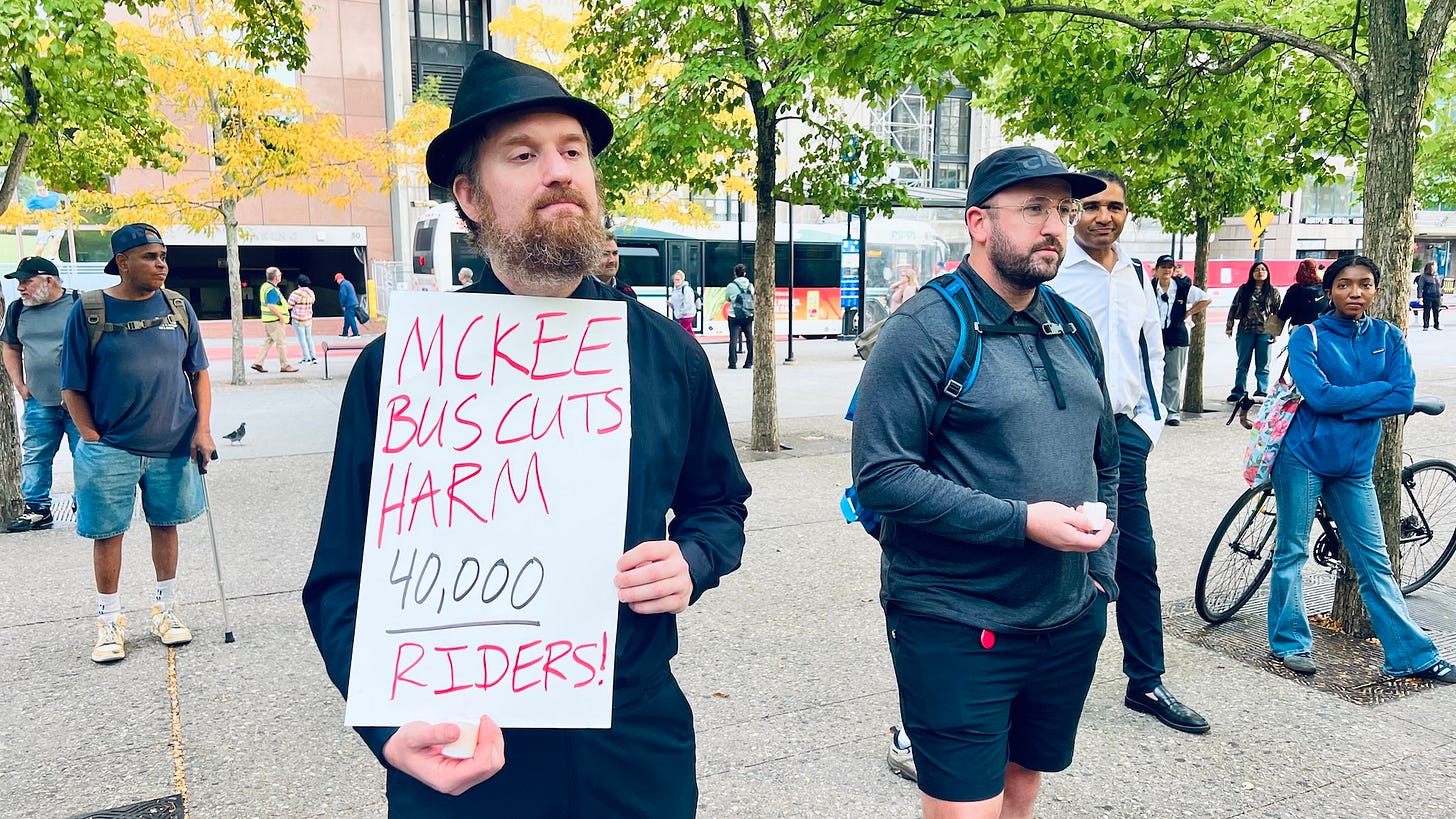 “40,000 people are affected by this cut. What we’re doing is cutting our way down to make sure we serve the fewest possible people. Instead of saying, “How do we get more people on buses and off the road?” It’s better for the climate to invest in this.