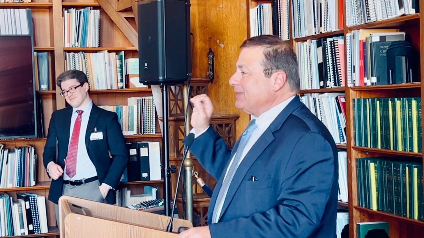 At the Environmental Council of Rhode Island (ECRI)’s legislative coffee hour, held annually in the State House Library, Speaker of the House K. Joseph Shekarchi began his remarks with a story about how Representative David Bennett threatened to resign as Chair of the House Environment and Natural Resources Committee. Representative Bennett was resigning, said the Speaker, because he had never passed a significant bill out of his committee. The Speaker assured Bennett that they would “consider every bill on its merits,” and the first bill passed was the historic 2021 Act on Climate.